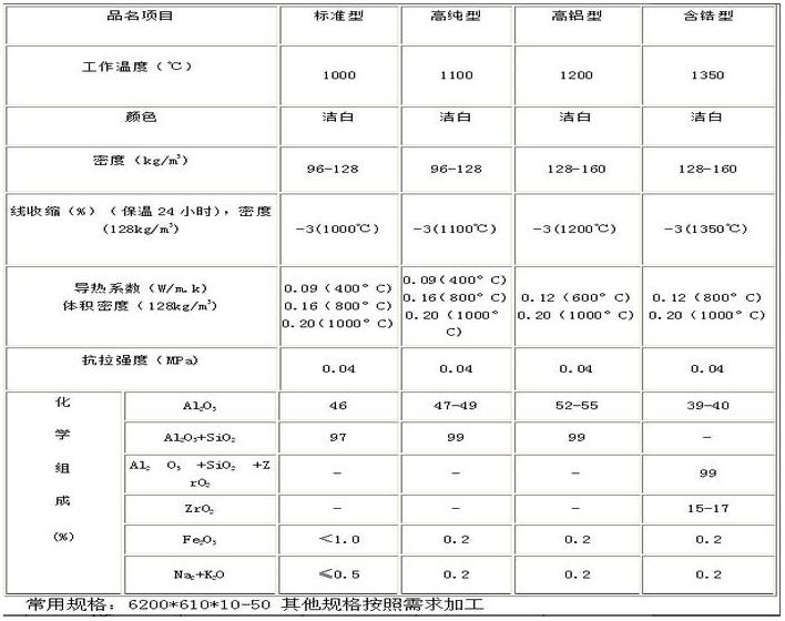顏色潔白、尺寸規整,集耐火、隔熱、保溫于一體。不含任何結合劑。在中性、氧化氣氛下長期使用時仍能保持良好的抗拉強度、韌性和纖維結構。耐溫為950-1400℃。