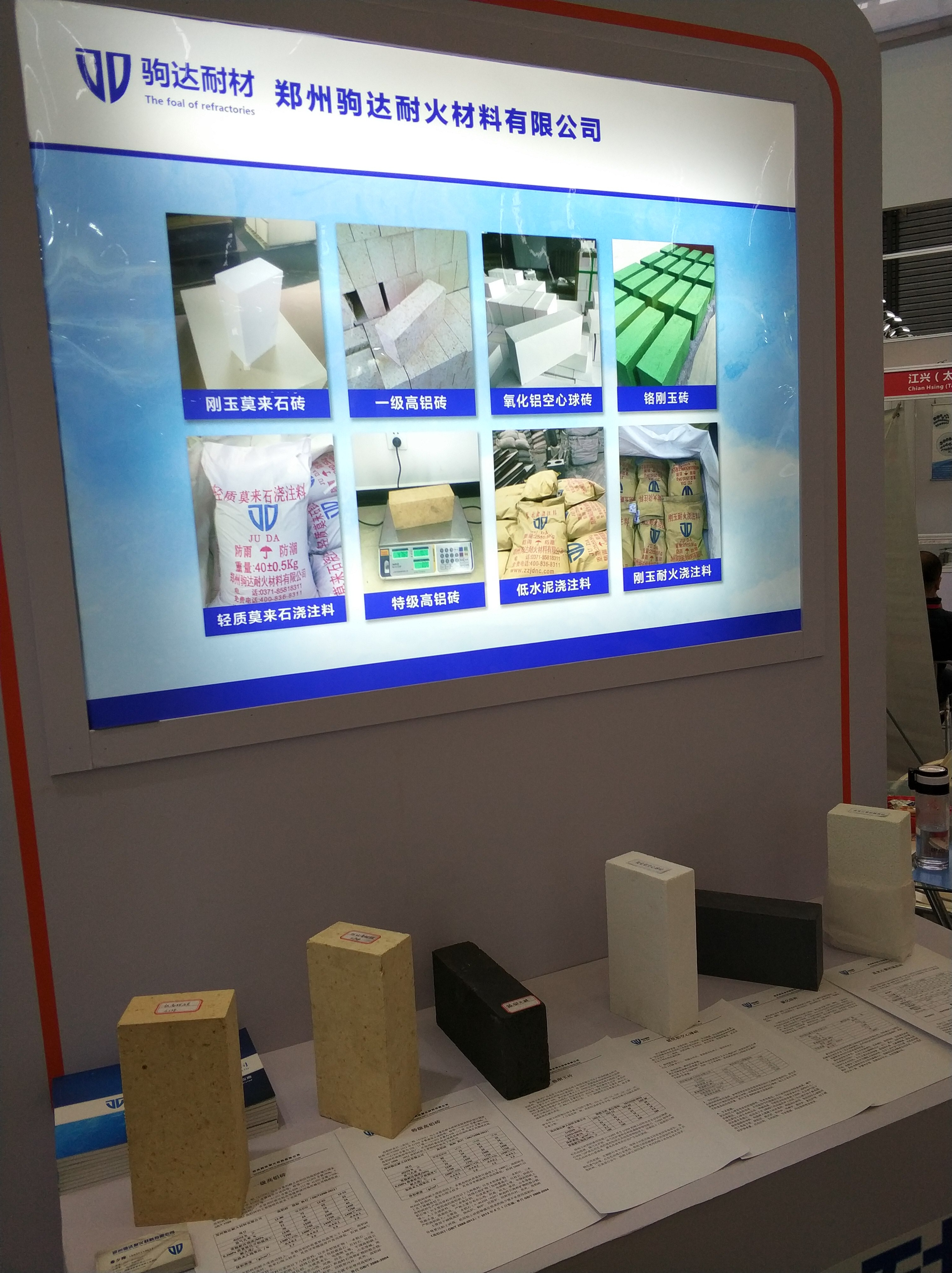 駒達耐材作為河南本地企業也是在參會當天帶去了我們的產品樣品其中包括:特級高鋁磚,鉻剛玉磚,氧化鋁空心球磚,碳化硅磚等具有河南傳統特色的產品。