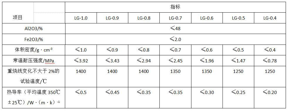 國家標準(GB 3995—1983)將高鋁質隔熱磚按體積密度分為 LG-1.0、LG-0.9、LG-0.8、LG-0.7、LG-0.6、LG-0.5 和LG-0.4七種牌號,其理化指標和尺寸允許偏差及外觀見表5-22和表5-23。