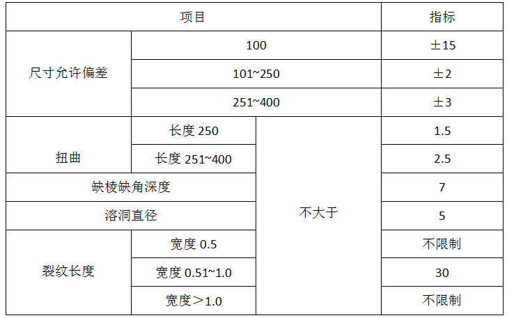 表2高鋁質隔熱耐火磚的尺寸允許偏差及外觀(mm)