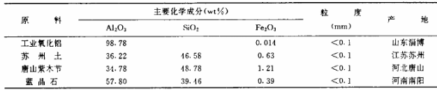 選用工業(yè)氧化鋁和蘇州土為主要原料,少量加入唐山紫木節(jié)和藍晶石。原料的化學(xué)組成見表1。