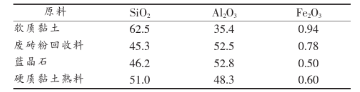 純鋸末輕質(zhì)莫來石保溫磚的原料化學(xué)成分如表1所列。