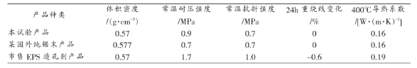 純鋸末輕質(zhì)莫來石保溫磚的各項(xiàng)物理性能按照定型隔熱制品的檢測方法進(jìn)行檢測,與以添加EPS顆粒為主的產(chǎn)品對比,結(jié)果如表3所列。