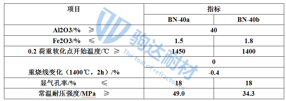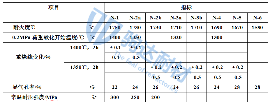 中國(guó)冶標(biāo)(YB/T 5106 — 1993)將粘土質(zhì)耐火磚按理化指標(biāo)分為N-1、N-2a、N-2b、N-3a、N-3b、N-4、N-5、N-6八種牌號(hào),其理化指標(biāo)見(jiàn)表1所列。