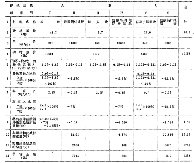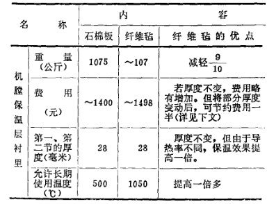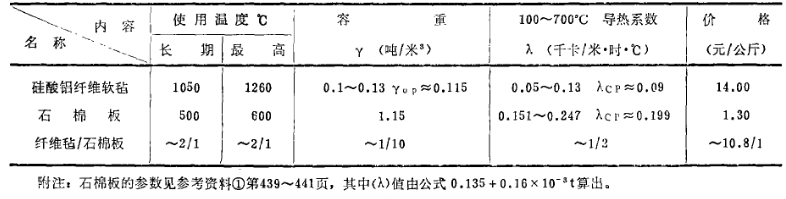 一、采用硅酸鋁纖維軟氈代替石棉板,這兩種材料的主要參數及價格列于表4: