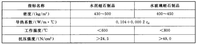 膨脹珍珠巖制品:常用水玻璃珍珠巖制品和水泥珍珠巖制品,制品應符合GB10303—1988《膨脹珍珠巖絕熱制品》標準,其性能如下表2
