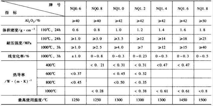 (1)輕質澆注料。輕質澆注料適用于爐墻、爐頂、煙道等部位的隔熱保溫層。高強輕質澆注料還可以用作排煙系統和熱風管道的工作襯。其特點是體積密度小,重燒線變化率低(熱穩定性好),熱導率低,具有-定的酎火度。它集耐火材料和保溫材料的優點于一身,見表1。