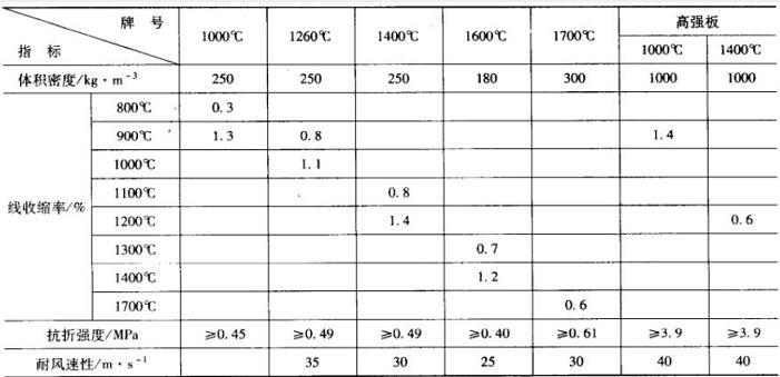 表3 耐火纖維板主要技術指標